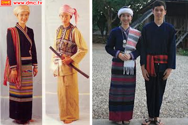 การประดับศีรษะผู้หญิงมักเกล้ามวยผมห้อยไปทางท้ายทอย มีผ้าสีดำหรือผ้าขาวม้าพันหัวผ้านี้เป็นการรองสายกระบุง ตะกร้าไว้บนหลัง และจะมีสายรัดมาพาดไว้บนหน้าผากซึ่งภาษาพื้นบ้านเรียกว่า“เป๊อะ”ผ้าโพกหัวก็จะมาช่วยรองสายรัดนี้ไม่ให้กดลงไปบนเนื้อหน้าผากบางครั้งอาจใช้ดอกไม้เสียบบนมวยผม ผู้ชาย โพกผ้าสีแดงเวลามีงาน เสื้อ ผู้หญิง สวมเสื้อผ่าหน้าสีดำหรือน้ำเงินเข้ม (เสื้อม่อฮ่อม) มีทั้งแขนสั้นและยาว ผู้ชาย ใส่เสื้อม่อฮ่อมผ่าหน้าหรือสวมเสื้อคอตั้งแขนกระบอกยาวสีดำ ขอบแขนสีแดง ผ้านุ่ง ผู้หญิง นุ่งผ้าสีน้ำเงินหรือสีดำ หรือสวมซิ่น ผู้ชาย นุ่งโจงกระเบนสีดำ หรือนุ่งเตี่ยวสามดูกสีดำแบบคนเมืองทั่วไป เครื่องประดับ ทั้งชายและหญิง มีการเจาะหู โดยอาจใช้แผ่นเงินขดเป็นวง เหลาไม้ใส่ หรืออาจใช้ดอกไม้เสียบในรูปหู